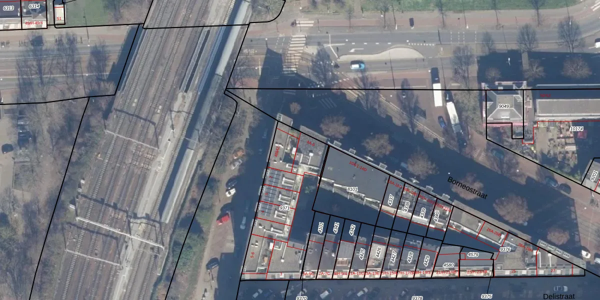 Borneostraat 4-G is gelegen op kadastraal perceel ASD15S9371. Deze kadastrale aanduiding is uniek en wordt gebruikt door het Kadaster om eigendomsrechten en andere zakelijke rechten vast te leggen. Het perceel maakt onderdeel uit van de kadastrale gemeente Amsterdam.