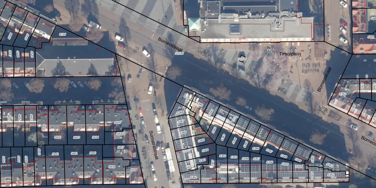 Het perceel waarop Borneostraat 42 staat heeft een oppervlakte van 73 m². Dit is een klein perceel. De perceeloppervlakte wordt geregistreerd door het Kadaster. Gedetailleerde informatie over de maten van dit perceel kunt u vinden in het rapport Kadastrale kaart met maatvoering van Borneostraat 42.