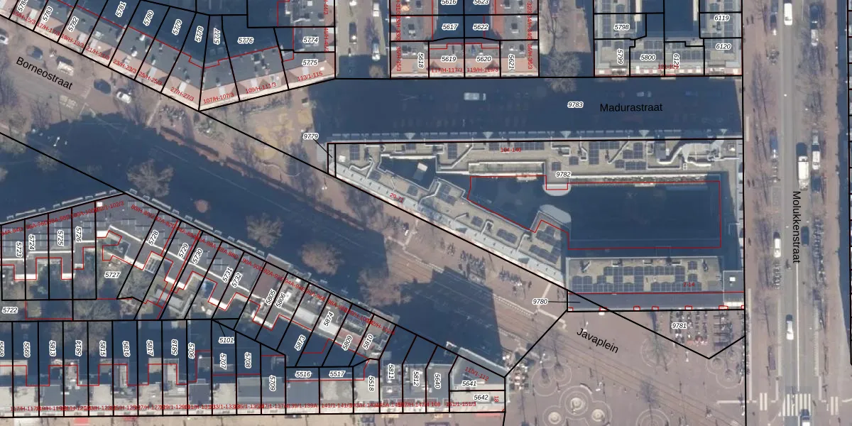 Het perceel waarop Borneostraat 43 staat heeft een oppervlakte van 2807 m². Dit is een zeer groot perceel. De perceeloppervlakte wordt geregistreerd door het Kadaster. Gedetailleerde informatie over de maten van dit perceel kunt u vinden in het rapport Kadastrale kaart met maatvoering van Borneostraat 43.