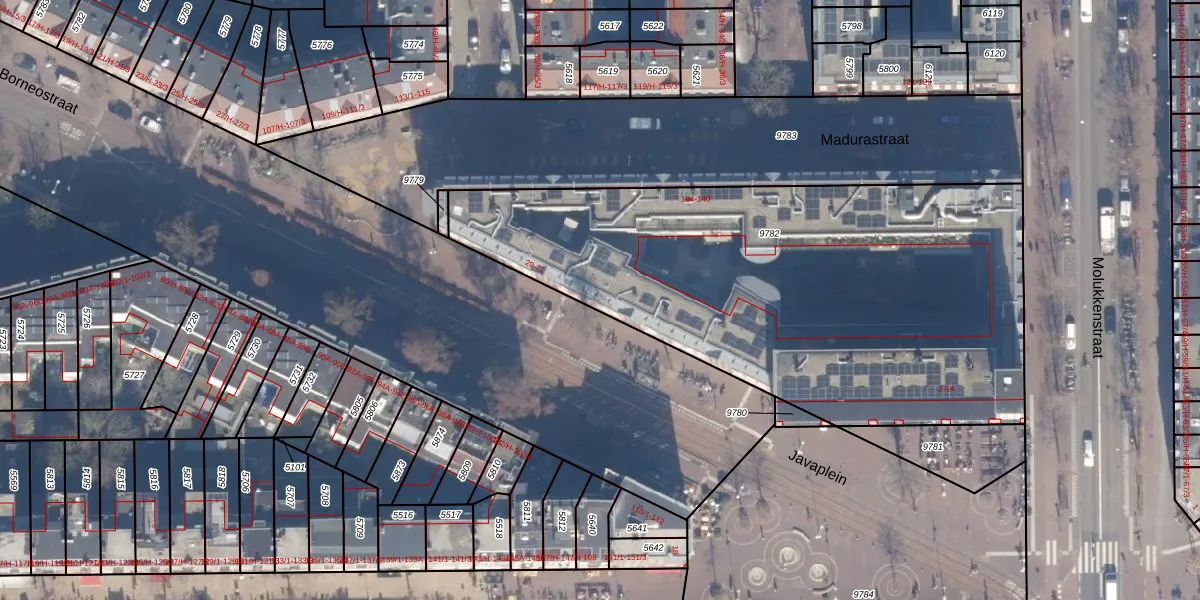 Het perceel waarop Borneostraat 47 staat heeft een oppervlakte van 2807 m². Dit is een zeer groot perceel. De perceeloppervlakte wordt geregistreerd door het Kadaster. Gedetailleerde informatie over de maten van dit perceel kunt u vinden in het rapport Kadastrale kaart met maatvoering van Borneostraat 47.