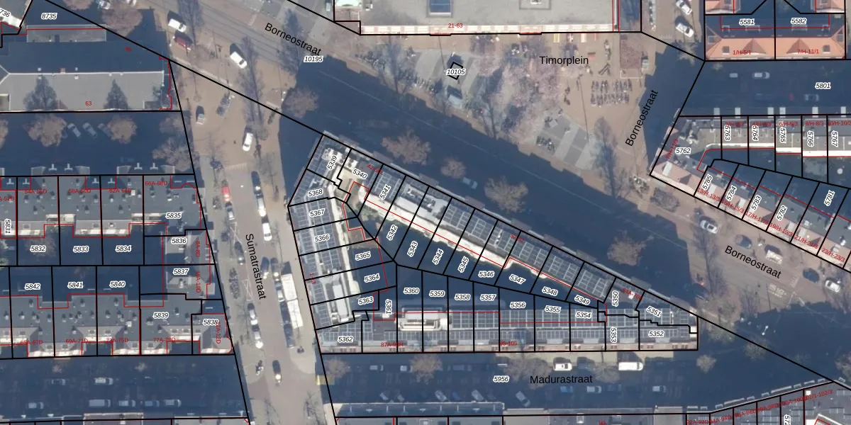 Het perceel waarop Borneostraat 48-H staat heeft een oppervlakte van 117 m². Dit is een middelgroot perceel. De perceeloppervlakte wordt geregistreerd door het Kadaster. Gedetailleerde informatie over de maten van dit perceel kunt u vinden in het rapport Kadastrale kaart met maatvoering van Borneostraat 48-H.