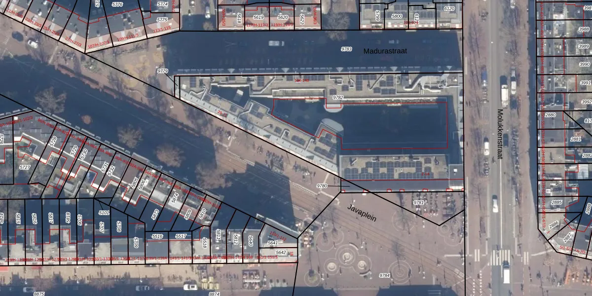 Het adres is gelegen op perceel 9782 in de sectie S en de kadastrale gemeente Amsterdam. De kadastrale aanduiding is aldus ASD15-S-9782. De oppervlakte van het perceel is 2807 m². Dat is groter dan gemiddeld in Amsterdam, waar de gemiddelde perceeloppervlakte op 537,06 m² ligt. Het kleinste perceel in de kadastrale gemeente is 0 m² groot. De grootste perceeloppervlakte is 14,5 ha. Er zijn 74 adressen aanwezig op het perceel. De huidige grenzen van het perceel zijn digitaal in de Basisregistratie Kadaster (BRK) geregistreerd op 28-08-2009.
