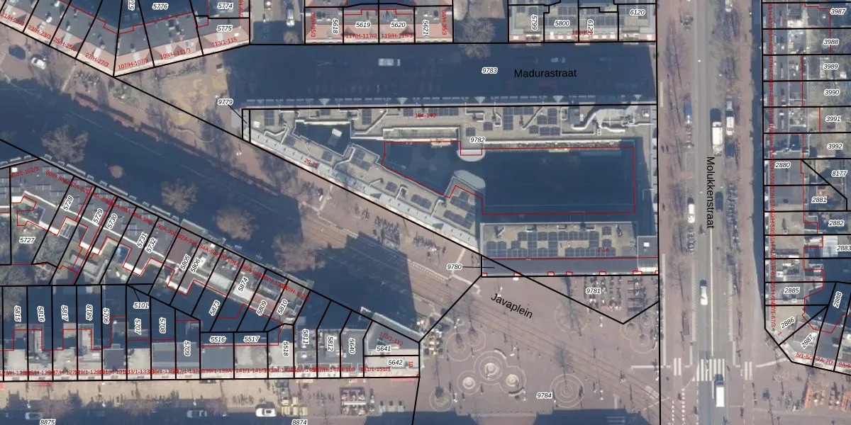 Het adres is gelegen op perceel 9782 in de sectie S en de kadastrale gemeente Amsterdam. De kadastrale aanduiding is aldus ASD15-S-9782. De oppervlakte van het perceel is 2807 m². Dat is groter dan gemiddeld in Amsterdam, waar de gemiddelde perceeloppervlakte op 537,06 m² ligt. Het kleinste perceel in de kadastrale gemeente is 0 m² groot. De grootste perceeloppervlakte is 14,5 ha. Er zijn 74 adressen aanwezig op het perceel. De laatste wijziging in het de Basisregistratie Kadaster (BRK) was op 28-08-2009.