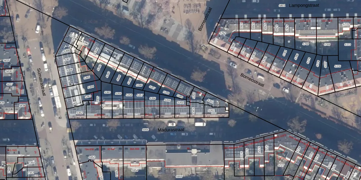 Het perceel waarop Borneostraat 66-B staat heeft een oppervlakte van 81 m². Dit is een klein perceel. De perceeloppervlakte wordt geregistreerd door het Kadaster. Gedetailleerde informatie over de maten van dit perceel kunt u vinden in het rapport Kadastrale kaart met maatvoering van Borneostraat 66-B.