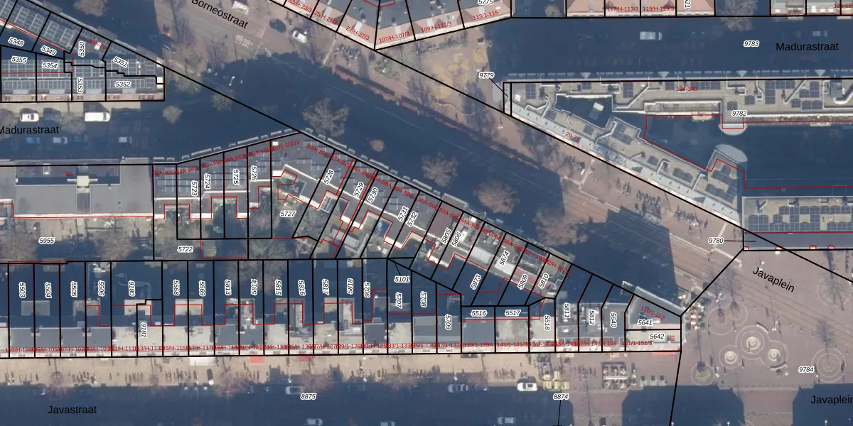 Borneostraat 90-D is gelegen op kadastraal perceel ASD15S5732. Deze kadastrale aanduiding is uniek en wordt gebruikt door het Kadaster om eigendomsrechten en andere zakelijke rechten vast te leggen. Het perceel maakt onderdeel uit van de kadastrale gemeente Amsterdam.