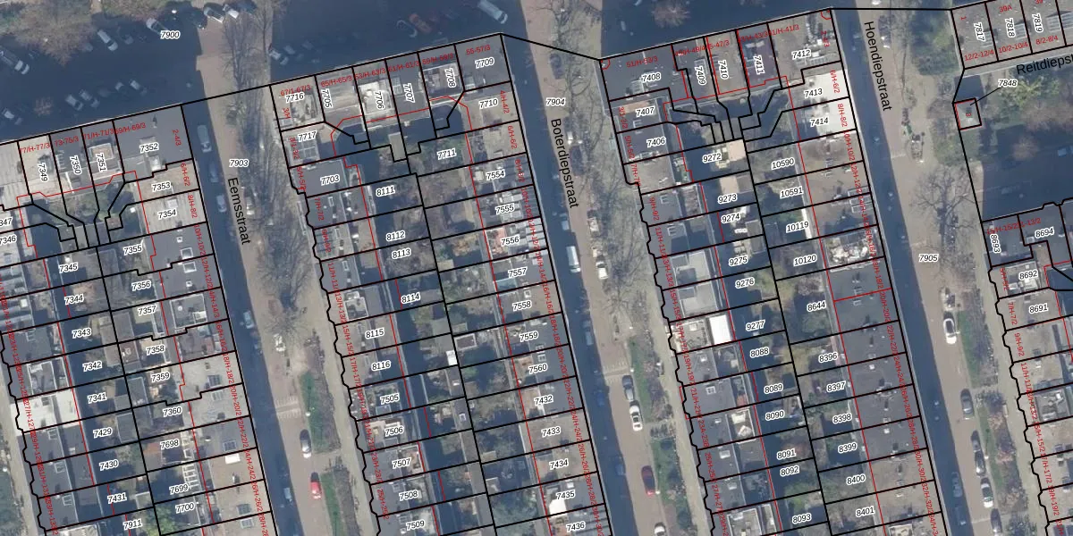 Boterdiepstraat 14-H is gelegen op kadastraal perceel ASD18V7557. Deze kadastrale aanduiding is uniek en wordt gebruikt door het Kadaster om eigendomsrechten en andere zakelijke rechten vast te leggen. Het perceel maakt onderdeel uit van de kadastrale gemeente Amsterdam.