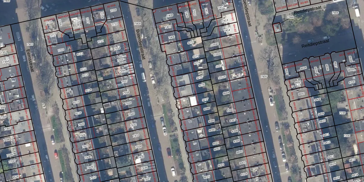 Het adres is gelegen op perceel 9276 in de sectie V en de kadastrale gemeente Amsterdam. De kadastrale aanduiding is aldus ASD18-V-9276. De gemiddelde perceelgrootte in Amsterdam is 558,8 m². Dit perceel is kleiner: de perceeloppervlakte bedraagt 129 m². De grootste perceeloppervlakte in de kadastrale gemeente is 12,5 ha. De kleinste oppervlakte bedraagt 0 m². Op het perceel zijn 4 adressen aanwezig. De huidige grenzen van het perceel zijn digitaal in de Basisregistratie Kadaster (BRK) geregistreerd op 29-11-2006.