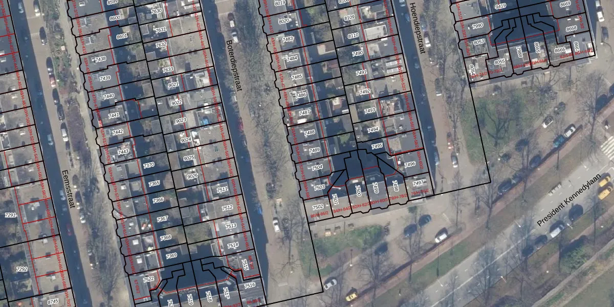 Het adres is gelegen op perceel 7489 in de sectie V en de kadastrale gemeente Amsterdam. De kadastrale aanduiding is aldus ASD18-V-7489. De gemiddelde perceelgrootte in Amsterdam is 558,8 m². Dit perceel is kleiner: de perceeloppervlakte bedraagt 130 m². Het grootste perceel in de kadastrale gemeente is 12,5 ha. Het kleinste perceel heeft een oppervlakte van 0 m². Op het perceel zijn 3 adressen aanwezig. In de Basisregistratie Kadaster (BRK) werden de grenzen van het perceel geregistreerd op 29-11-2006.