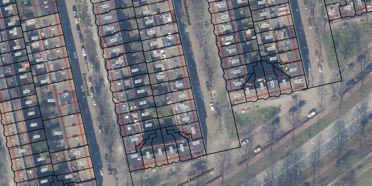 Het adres is gelegen op perceel 7512 in de sectie V en de kadastrale gemeente Amsterdam. De kadastrale aanduiding is aldus ASD18-V-7512. De gemiddelde perceelgrootte in Amsterdam is 558,8 m². Dit perceel is kleiner: de perceeloppervlakte bedraagt 128 m². Het grootste perceel in de kadastrale gemeente is 12,5 ha. Het kleinste perceel heeft een oppervlakte van 0 m². Op het perceel liggen in totaal 3 adressen. In de Basisregistratie Kadaster (BRK) werden de grenzen van het perceel geregistreerd op 17-11-2006.