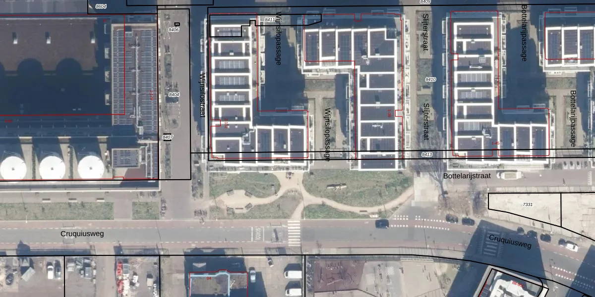 Bottelarijstraat 1 is gelegen op kadastraal perceel ASD02A8410. Deze kadastrale aanduiding is uniek en wordt gebruikt door het Kadaster om eigendomsrechten en andere zakelijke rechten vast te leggen. Het perceel maakt onderdeel uit van de kadastrale gemeente Amsterdam.
