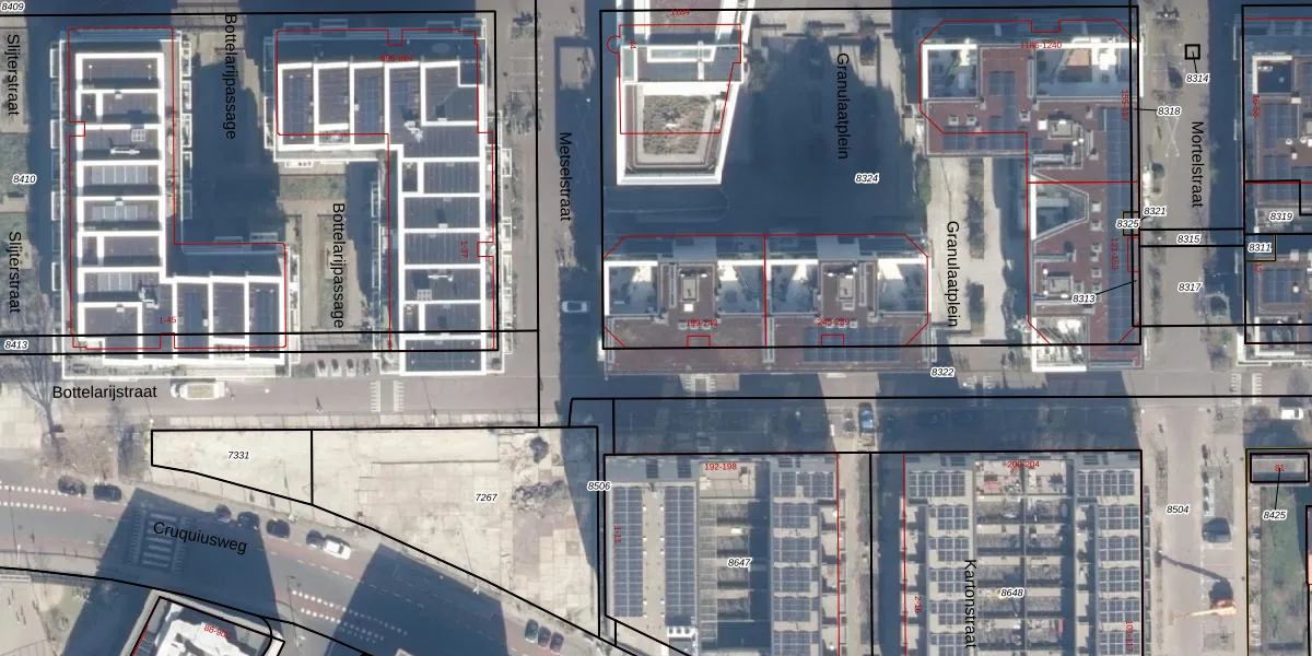 Het perceel waarop Bottelarijstraat 201 staat heeft een oppervlakte van 4139 m². Dit is een zeer groot perceel. De perceeloppervlakte wordt geregistreerd door het Kadaster. Gedetailleerde informatie over de maten van dit perceel kunt u vinden in het rapport Kadastrale kaart met maatvoering van Bottelarijstraat 201.