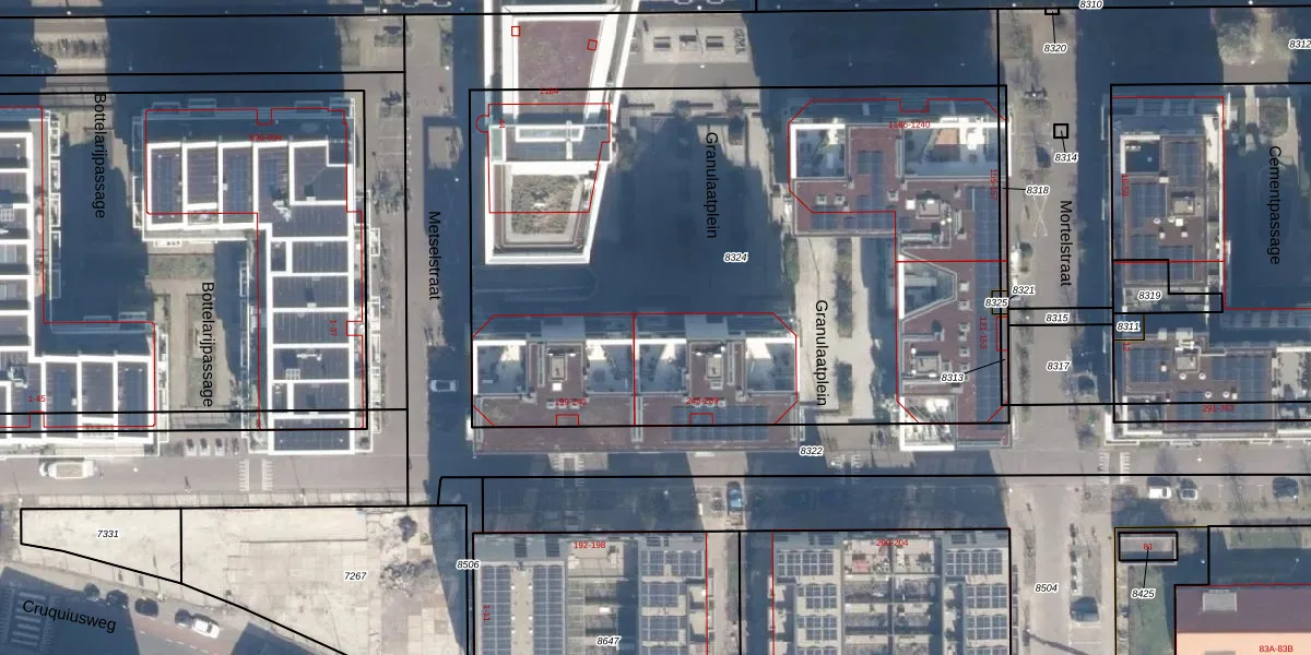Het perceel waarop het adres ligt is ASD02-A-8324. De afkorting 'ASD02' staat voor kadastrale gemeente Amsterdam. De oppervlakte van het perceel is 4139 m². Dat is groter dan gemiddeld in Amsterdam, waar de gemiddelde perceeloppervlakte op 2763,93 m² ligt. De grootste perceeloppervlakte in de kadastrale gemeente is 14,3 ha. De kleinste oppervlakte bedraagt 0 m². Op het perceel zijn 94 adressen aanwezig. De laatste wijziging in het de Basisregistratie Kadaster (BRK) was op 23-09-2019.