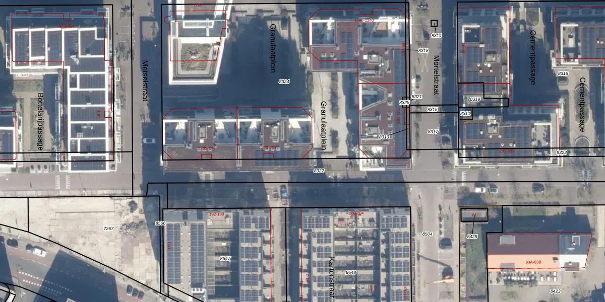 Het perceel waarop het adres ligt is ASD02-A-8324. De afkorting 'ASD02' staat voor kadastrale gemeente Amsterdam. De oppervlakte van het perceel is 4139 m². Dat is groter dan gemiddeld in Amsterdam, waar de gemiddelde perceeloppervlakte op 2763,93 m² ligt. De grootste perceeloppervlakte in de kadastrale gemeente is 14,3 ha. De kleinste oppervlakte bedraagt 0 m². Er zijn 94 adressen aanwezig op het perceel. In de Basisregistratie Kadaster (BRK) werden de grenzen van het perceel geregistreerd op 23-09-2019.