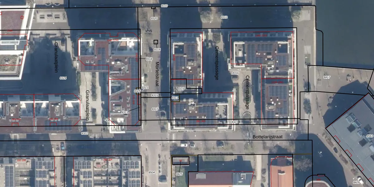 Bottelarijstraat 349 is gelegen op kadastraal perceel ASD02A8319. Deze kadastrale aanduiding is uniek en wordt gebruikt door het Kadaster om eigendomsrechten en andere zakelijke rechten vast te leggen. Het perceel maakt onderdeel uit van de kadastrale gemeente Amsterdam.