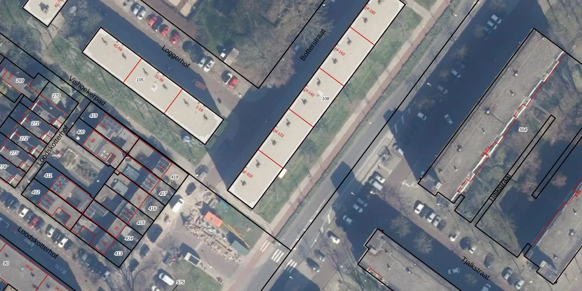 Botterstraat 112 is gelegen op kadastraal perceel ASD32AM108. Deze kadastrale aanduiding is uniek en wordt gebruikt door het Kadaster om eigendomsrechten en andere zakelijke rechten vast te leggen. Het perceel maakt onderdeel uit van de kadastrale gemeente Amsterdam.