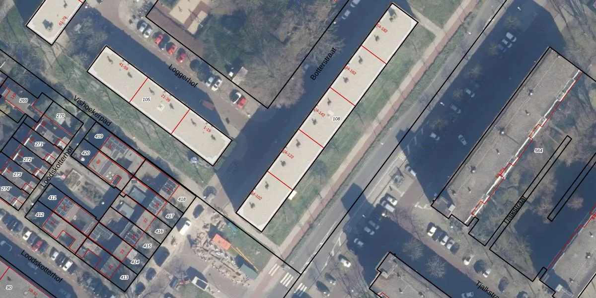 Botterstraat 120 is gelegen op kadastraal perceel ASD32AM108. Deze kadastrale aanduiding is uniek en wordt gebruikt door het Kadaster om eigendomsrechten en andere zakelijke rechten vast te leggen. Het perceel maakt onderdeel uit van de kadastrale gemeente Amsterdam.