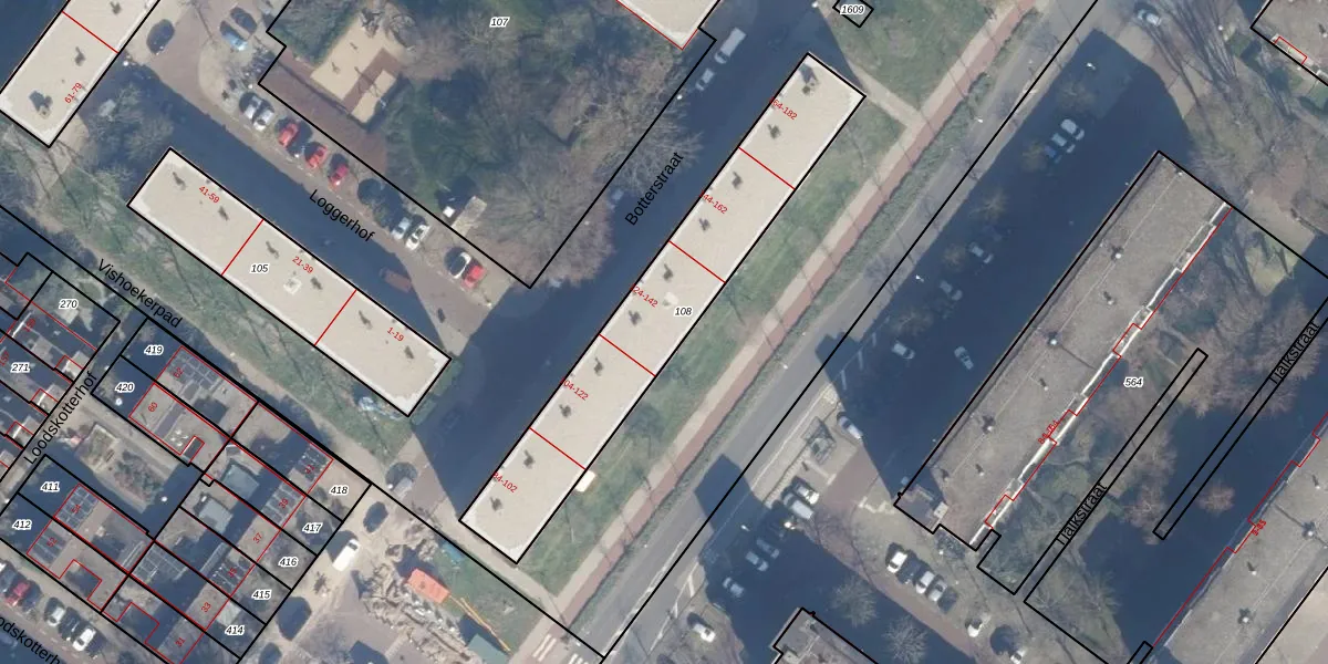 Het perceel waarop Botterstraat 130 staat heeft een oppervlakte van 951 m². Dit is een groot perceel. De perceeloppervlakte wordt geregistreerd door het Kadaster. Gedetailleerde informatie over de maten van dit perceel kunt u vinden in het rapport Kadastrale kaart met maatvoering van Botterstraat 130.