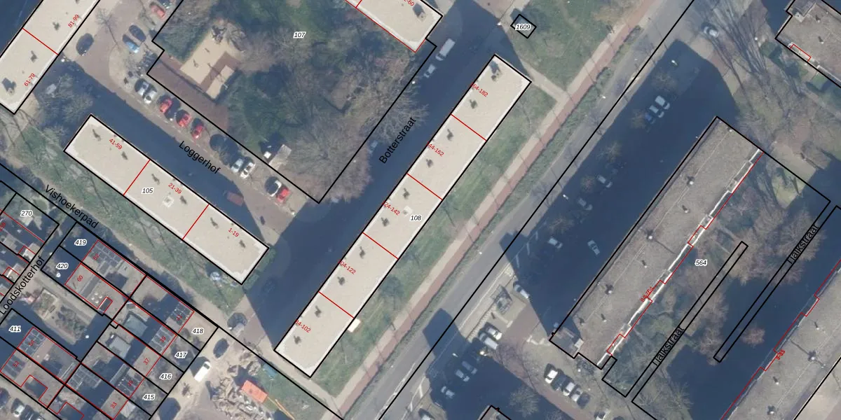 Het perceel waarop Botterstraat 136 staat heeft een oppervlakte van 951 m². Dit is een groot perceel. De perceeloppervlakte wordt geregistreerd door het Kadaster. Gedetailleerde informatie over de maten van dit perceel kunt u vinden in het rapport Kadastrale kaart met maatvoering van Botterstraat 136.