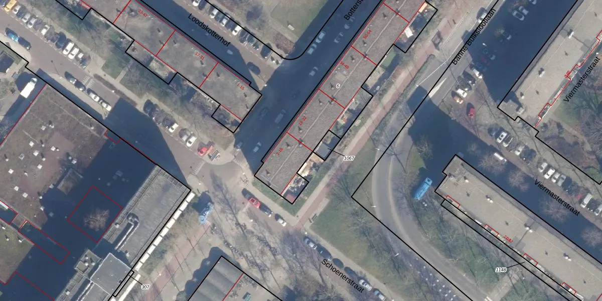 Botterstraat 14 is gelegen op kadastraal perceel ASD32AM6. Deze kadastrale aanduiding is uniek en wordt gebruikt door het Kadaster om eigendomsrechten en andere zakelijke rechten vast te leggen. Het perceel maakt onderdeel uit van de kadastrale gemeente Amsterdam.