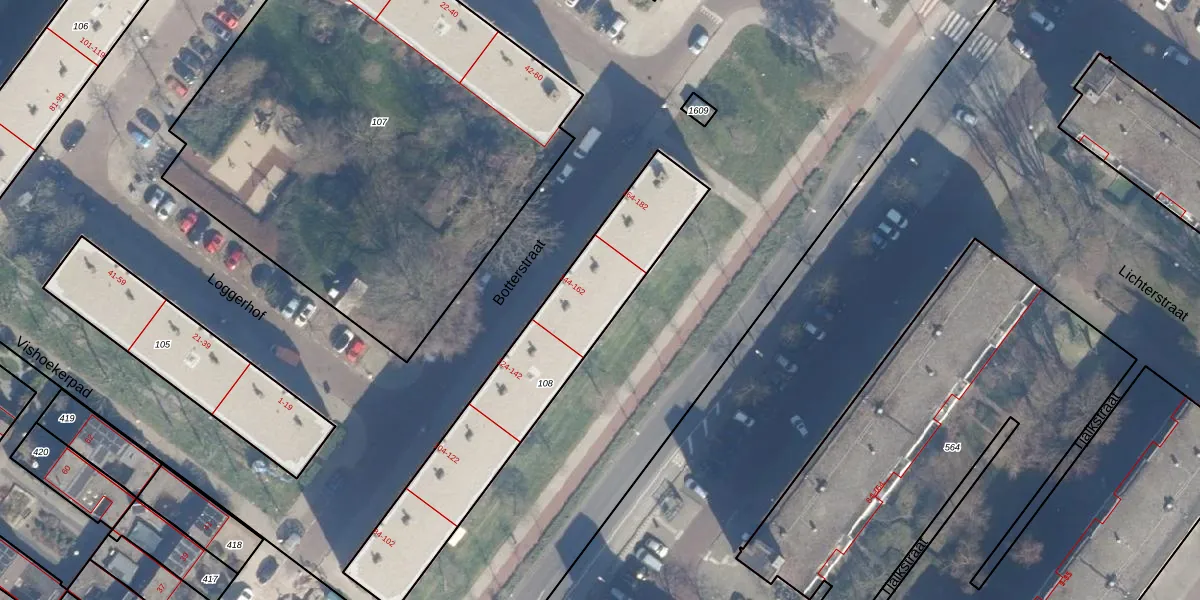 Botterstraat 154 is gelegen op kadastraal perceel ASD32AM108. Deze kadastrale aanduiding is uniek en wordt gebruikt door het Kadaster om eigendomsrechten en andere zakelijke rechten vast te leggen. Het perceel maakt onderdeel uit van de kadastrale gemeente Amsterdam.