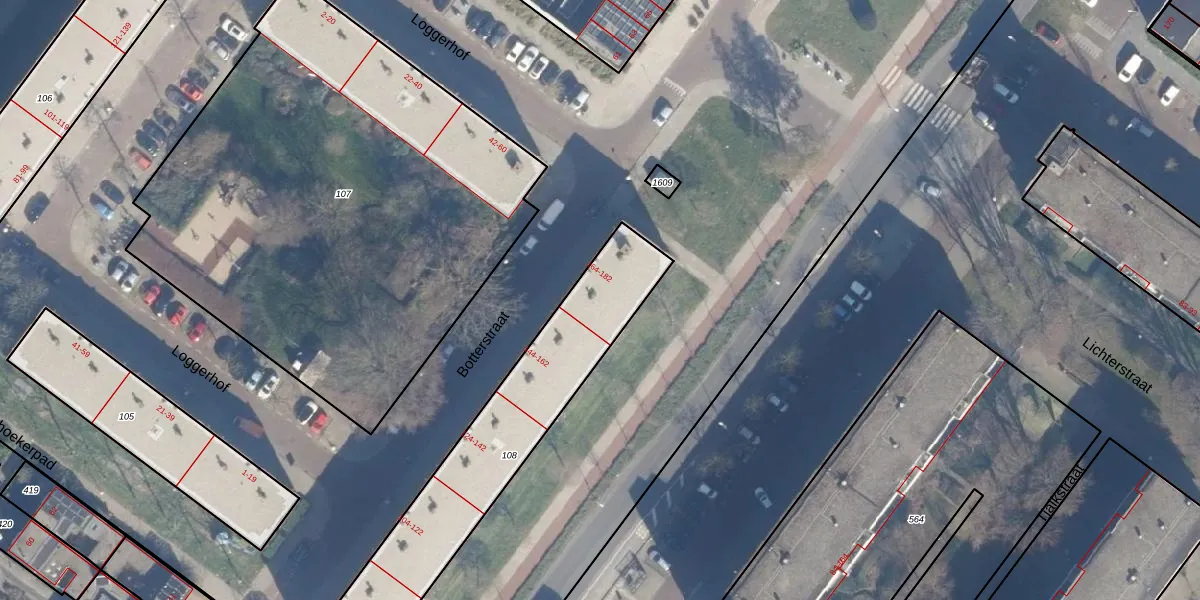 Het perceel waarop Botterstraat 166 staat heeft een oppervlakte van 951 m². Dit is een groot perceel. De perceeloppervlakte wordt geregistreerd door het Kadaster. Gedetailleerde informatie over de maten van dit perceel kunt u vinden in het rapport Kadastrale kaart met maatvoering van Botterstraat 166.