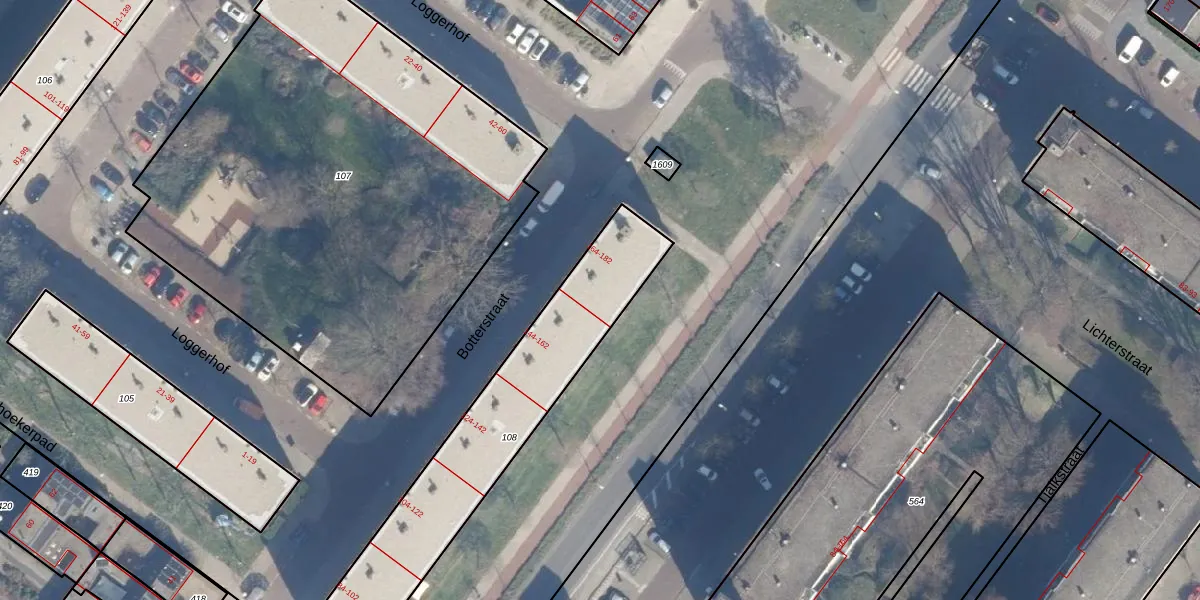 Het perceel waarop Botterstraat 168 staat heeft een oppervlakte van 951 m². Dit is een groot perceel. De perceeloppervlakte wordt geregistreerd door het Kadaster. Gedetailleerde informatie over de maten van dit perceel kunt u vinden in het rapport Kadastrale kaart met maatvoering van Botterstraat 168.