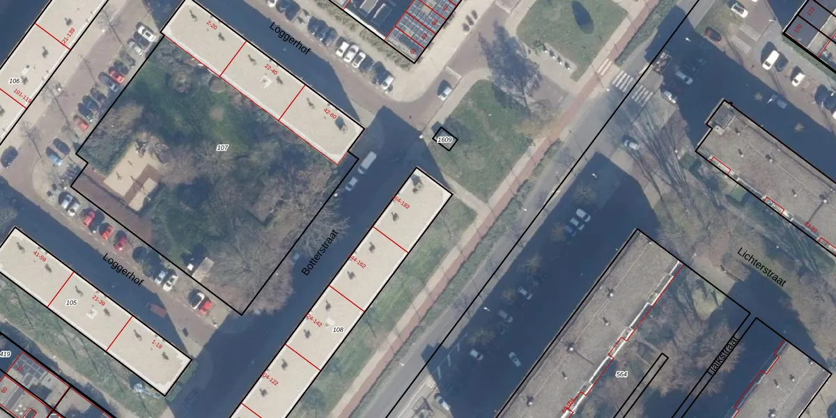 Botterstraat 174 is gelegen op kadastraal perceel ASD32AM108. Deze kadastrale aanduiding is uniek en wordt gebruikt door het Kadaster om eigendomsrechten en andere zakelijke rechten vast te leggen. Het perceel maakt onderdeel uit van de kadastrale gemeente Amsterdam.
