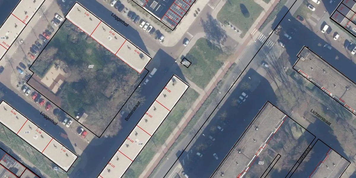 Botterstraat 176 is gelegen op kadastraal perceel ASD32AM108. Deze kadastrale aanduiding is uniek en wordt gebruikt door het Kadaster om eigendomsrechten en andere zakelijke rechten vast te leggen. Het perceel maakt onderdeel uit van de kadastrale gemeente Amsterdam.