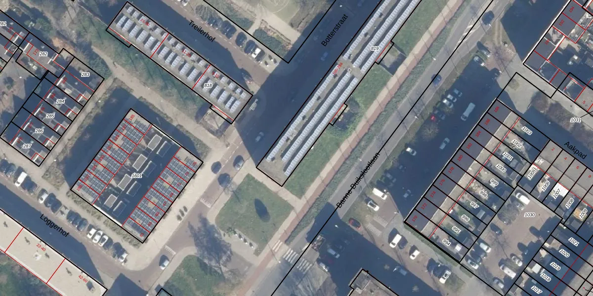 Het perceel waarop Botterstraat 200 staat heeft een oppervlakte van 971 m². Dit is een groot perceel. De perceeloppervlakte wordt geregistreerd door het Kadaster. Gedetailleerde informatie over de maten van dit perceel kunt u vinden in het rapport Kadastrale kaart met maatvoering van Botterstraat 200.