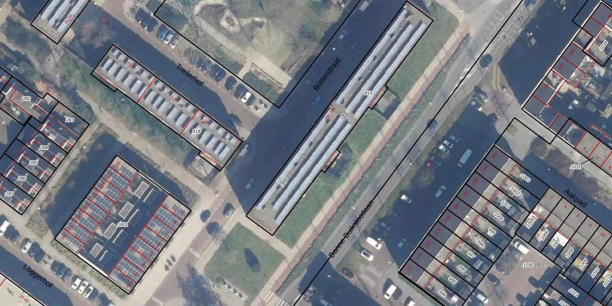 Het perceel waarop Botterstraat 216 staat heeft een oppervlakte van 971 m². Dit is een groot perceel. De perceeloppervlakte wordt geregistreerd door het Kadaster. Gedetailleerde informatie over de maten van dit perceel kunt u vinden in het rapport Kadastrale kaart met maatvoering van Botterstraat 216.