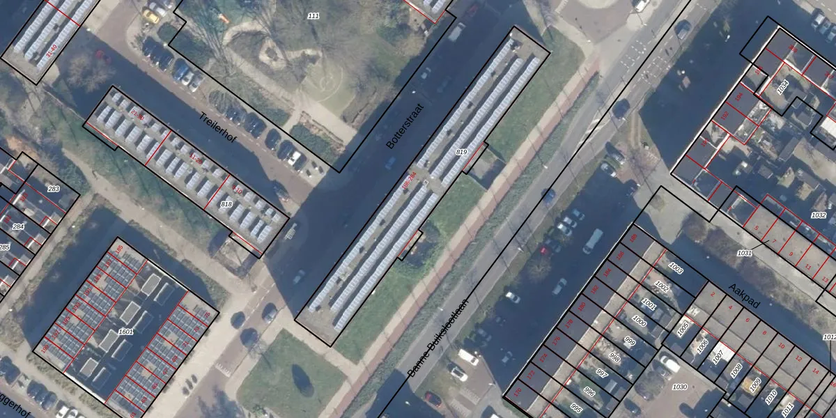 Het perceel waarop Botterstraat 230 staat heeft een oppervlakte van 971 m². Dit is een groot perceel. De perceeloppervlakte wordt geregistreerd door het Kadaster. Gedetailleerde informatie over de maten van dit perceel kunt u vinden in het rapport Kadastrale kaart met maatvoering van Botterstraat 230.