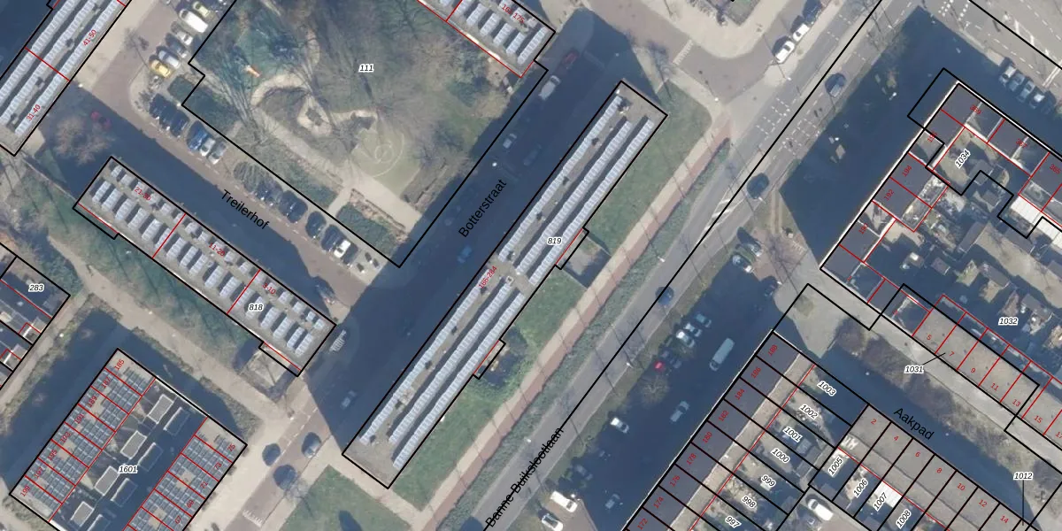 Het perceel waarop Botterstraat 240 staat heeft een oppervlakte van 971 m². Dit is een groot perceel. De perceeloppervlakte wordt geregistreerd door het Kadaster. Gedetailleerde informatie over de maten van dit perceel kunt u vinden in het rapport Kadastrale kaart met maatvoering van Botterstraat 240.