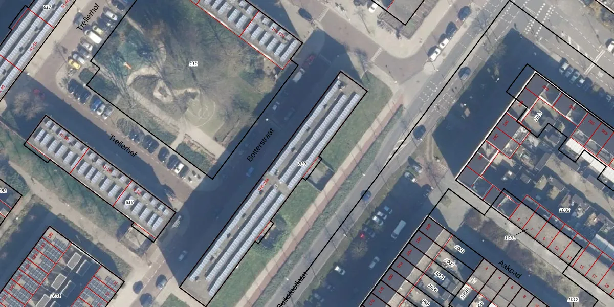 Het perceel waarop Botterstraat 254 staat heeft een oppervlakte van 971 m². Dit is een groot perceel. De perceeloppervlakte wordt geregistreerd door het Kadaster. Gedetailleerde informatie over de maten van dit perceel kunt u vinden in het rapport Kadastrale kaart met maatvoering van Botterstraat 254.