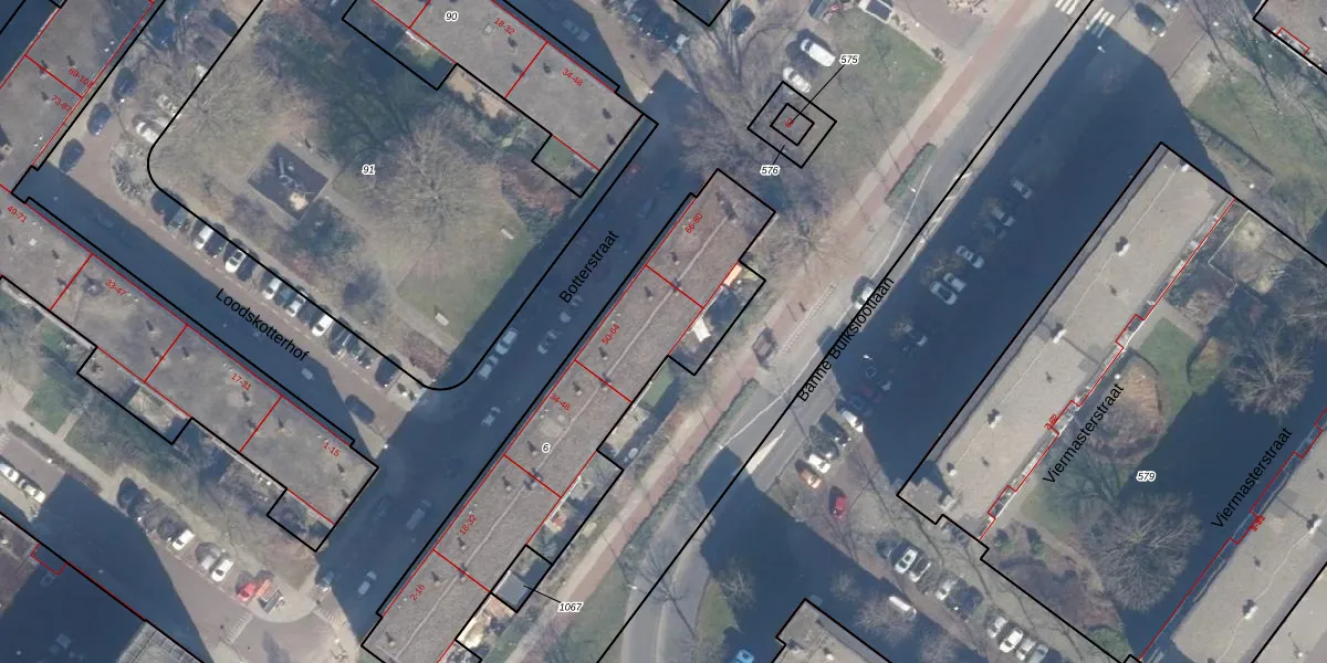Botterstraat 60 is gelegen op kadastraal perceel ASD32AM6. Deze kadastrale aanduiding is uniek en wordt gebruikt door het Kadaster om eigendomsrechten en andere zakelijke rechten vast te leggen. Het perceel maakt onderdeel uit van de kadastrale gemeente Amsterdam.