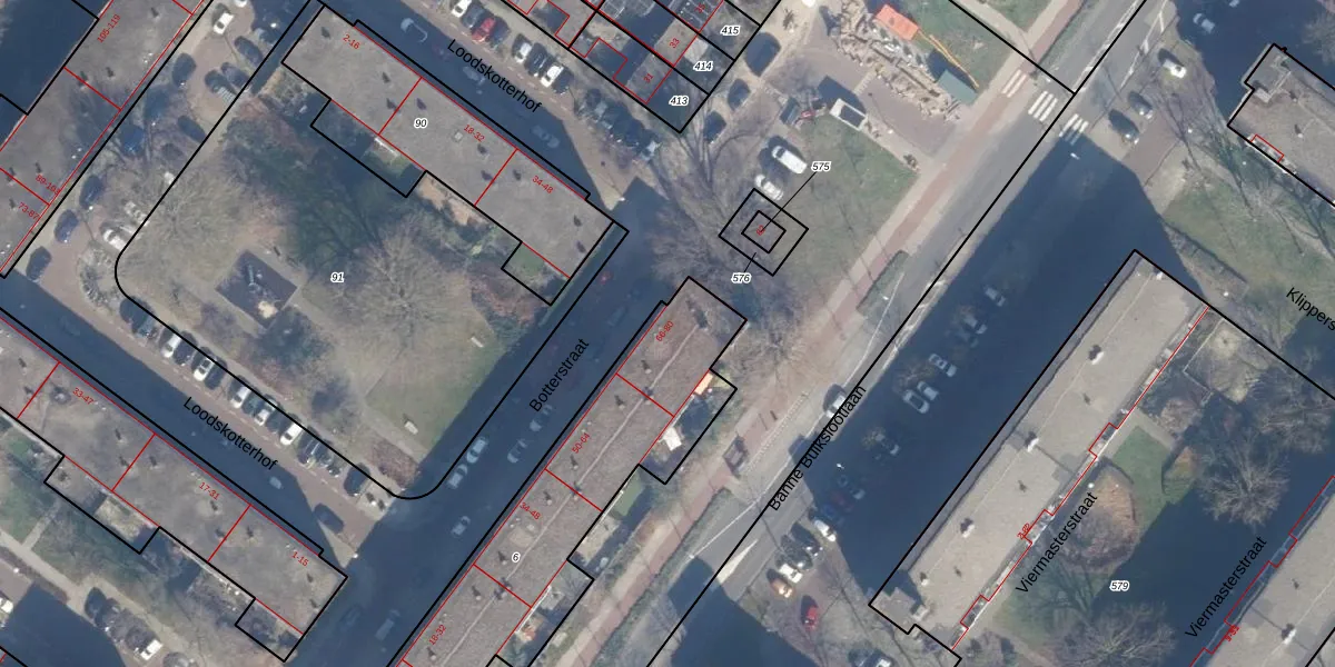 Botterstraat 72 is gelegen op kadastraal perceel ASD32AM6. Deze kadastrale aanduiding is uniek en wordt gebruikt door het Kadaster om eigendomsrechten en andere zakelijke rechten vast te leggen. Het perceel maakt onderdeel uit van de kadastrale gemeente Amsterdam.