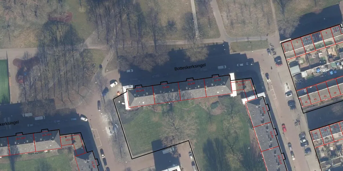 Het perceel waarop Botteskerksingel 7-4 staat heeft een oppervlakte van 8291 m². Dit is een zeer groot perceel. De perceeloppervlakte wordt geregistreerd door het Kadaster. Gedetailleerde informatie over de maten van dit perceel kunt u vinden in het rapport Kadastrale kaart met maatvoering van Botteskerksingel 7-4.