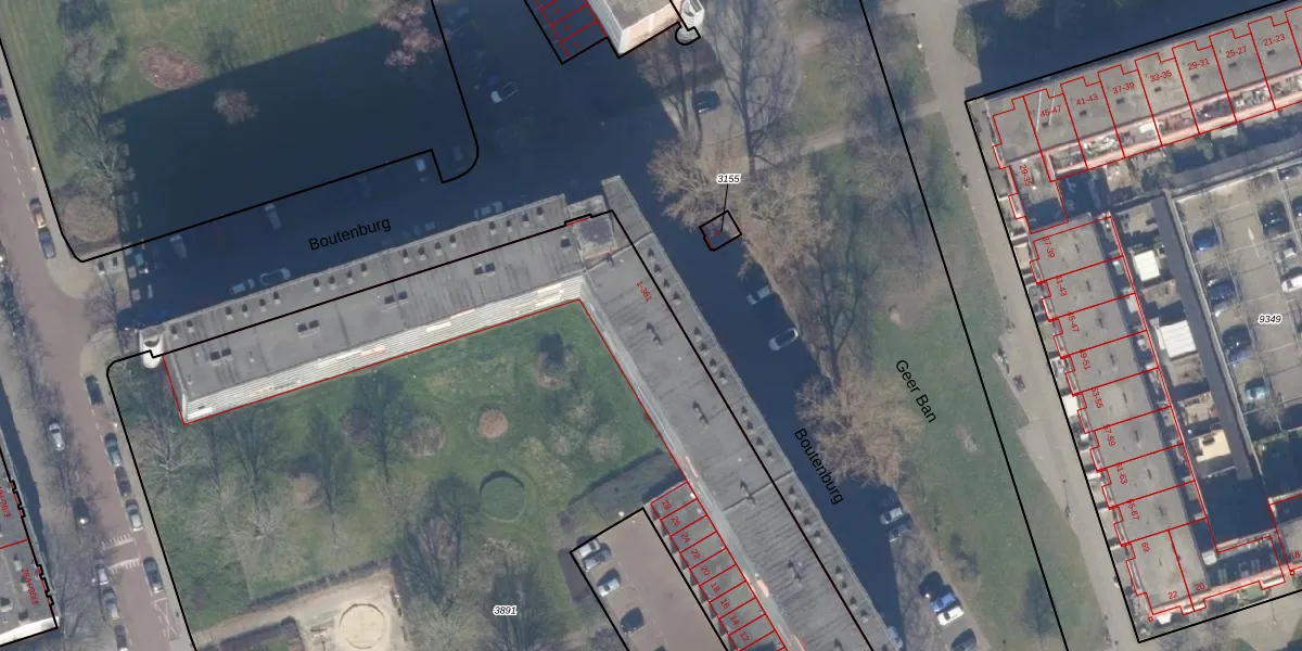 Het perceel waarop Boutenburg 323 staat heeft een oppervlakte van 7676 m². Dit is een zeer groot perceel. De perceeloppervlakte wordt geregistreerd door het Kadaster. Gedetailleerde informatie over de maten van dit perceel kunt u vinden in het rapport Kadastrale kaart met maatvoering van Boutenburg 323.