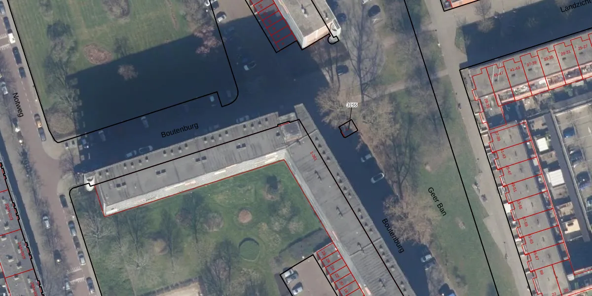 Het perceel waarop Boutenburg 5 staat heeft een oppervlakte van 7676 m². Dit is een zeer groot perceel. De perceeloppervlakte wordt geregistreerd door het Kadaster. Gedetailleerde informatie over de maten van dit perceel kunt u vinden in het rapport Kadastrale kaart met maatvoering van Boutenburg 5.
