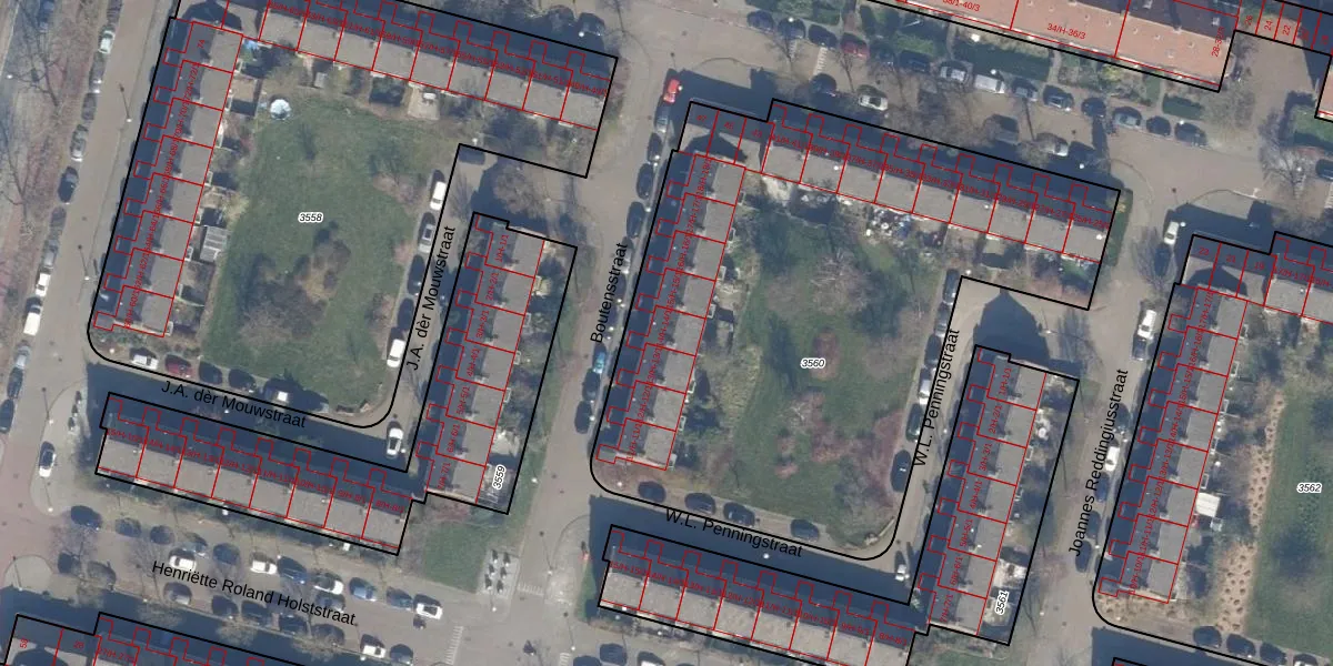 Het perceel waarop Boutensstraat 14-H staat heeft een oppervlakte van 3276 m². Dit is een zeer groot perceel. De perceeloppervlakte wordt geregistreerd door het Kadaster. Gedetailleerde informatie over de maten van dit perceel kunt u vinden in het rapport Kadastrale kaart met maatvoering van Boutensstraat 14-H.