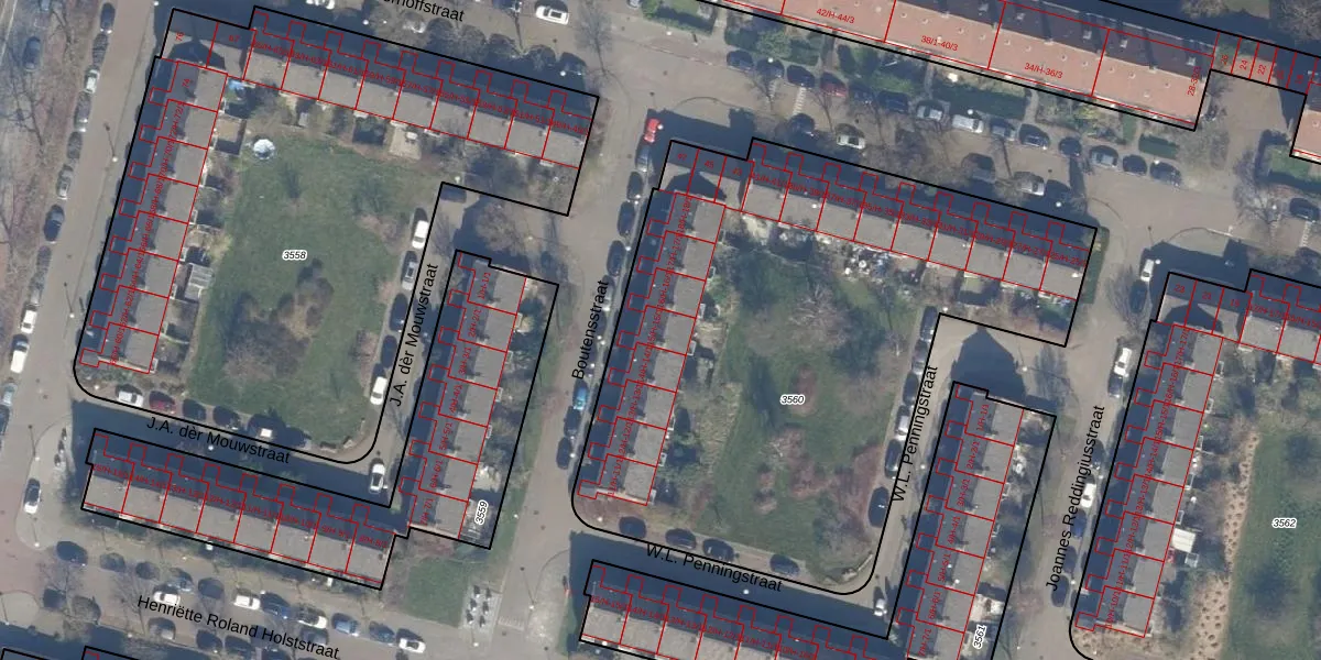 Het perceel waarop Boutensstraat 15-1 staat heeft een oppervlakte van 3276 m². Dit is een zeer groot perceel. De perceeloppervlakte wordt geregistreerd door het Kadaster. Gedetailleerde informatie over de maten van dit perceel kunt u vinden in het rapport Kadastrale kaart met maatvoering van Boutensstraat 15-1.