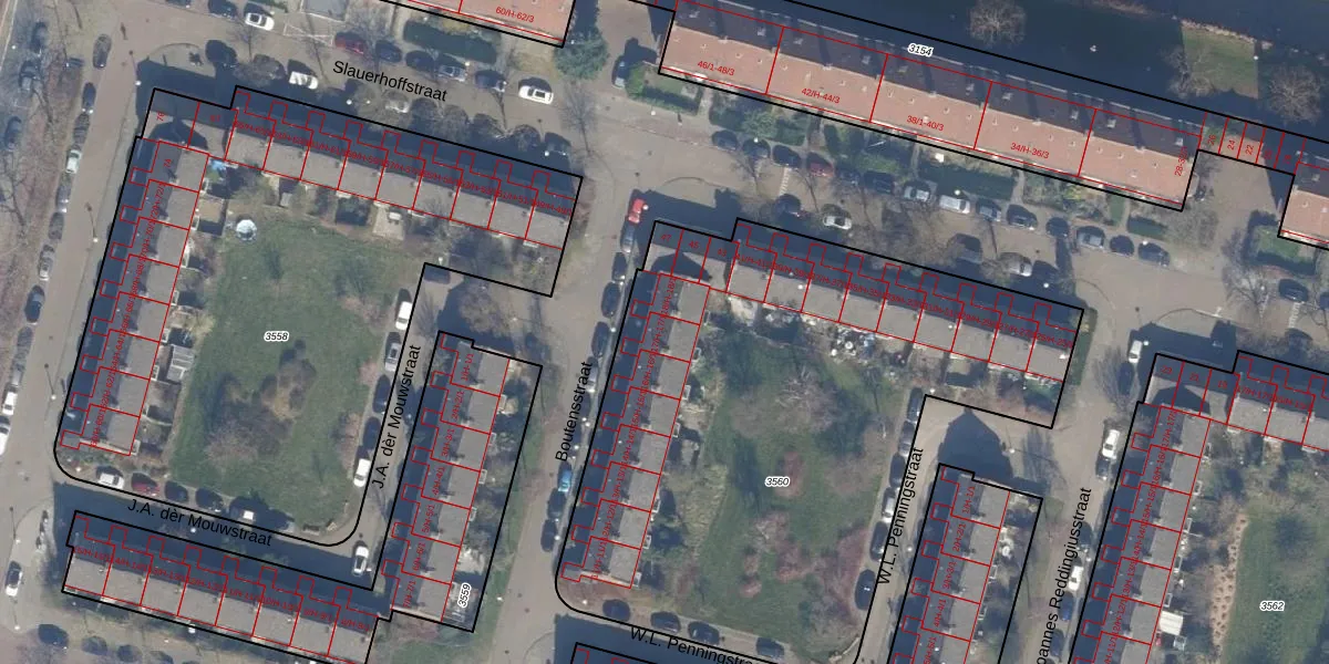 Het perceel waarop Boutensstraat 17-1 staat heeft een oppervlakte van 3276 m². Dit is een zeer groot perceel. De perceeloppervlakte wordt geregistreerd door het Kadaster. Gedetailleerde informatie over de maten van dit perceel kunt u vinden in het rapport Kadastrale kaart met maatvoering van Boutensstraat 17-1.