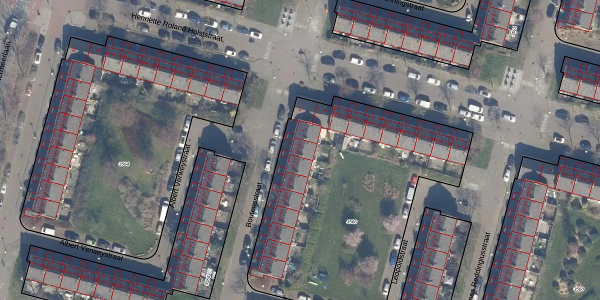 Het perceel waarop Boutensstraat 8-1 staat heeft een oppervlakte van 3451 m². Dit is een zeer groot perceel. De perceeloppervlakte wordt geregistreerd door het Kadaster. Gedetailleerde informatie over de maten van dit perceel kunt u vinden in het rapport Kadastrale kaart met maatvoering van Boutensstraat 8-1.