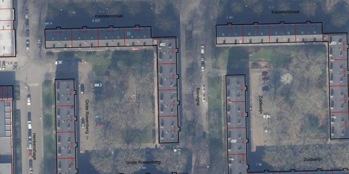 Bouvigne 25 is gelegen op kadastraal perceel ASD30AK104. Deze kadastrale aanduiding is uniek en wordt gebruikt door het Kadaster om eigendomsrechten en andere zakelijke rechten vast te leggen. Het perceel maakt onderdeel uit van de kadastrale gemeente Amsterdam.