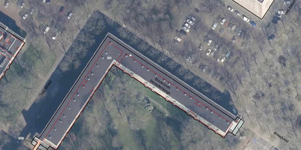 Het perceel waarop Bovenover 166 staat heeft een oppervlakte van 2428 m². Dit is een zeer groot perceel. De perceeloppervlakte wordt geregistreerd door het Kadaster. Gedetailleerde informatie over de maten van dit perceel kunt u vinden in het rapport Kadastrale kaart met maatvoering van Bovenover 166.