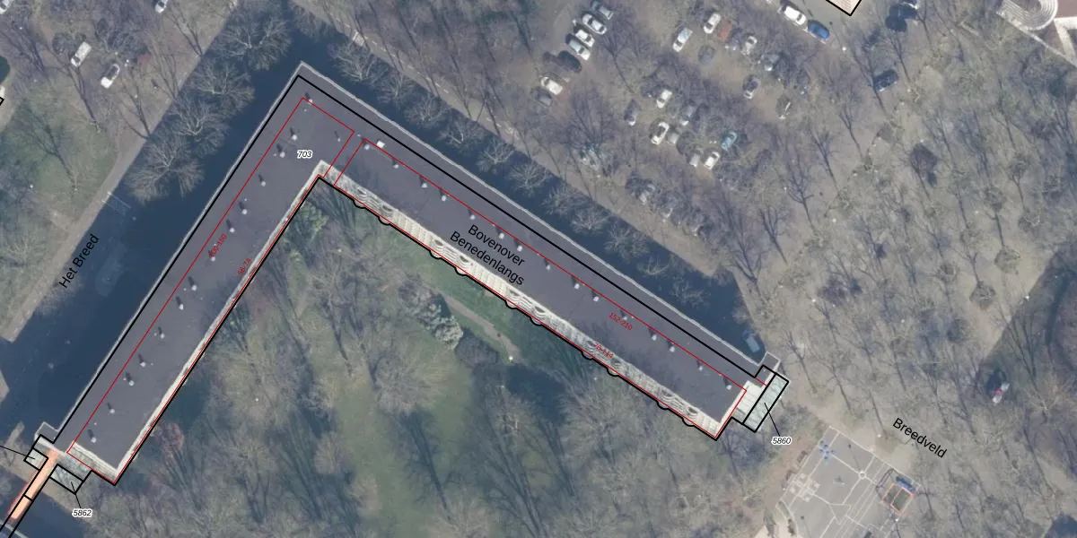 Het perceel waarop Bovenover 180 staat heeft een oppervlakte van 2428 m². Dit is een zeer groot perceel. De perceeloppervlakte wordt geregistreerd door het Kadaster. Gedetailleerde informatie over de maten van dit perceel kunt u vinden in het rapport Kadastrale kaart met maatvoering van Bovenover 180.