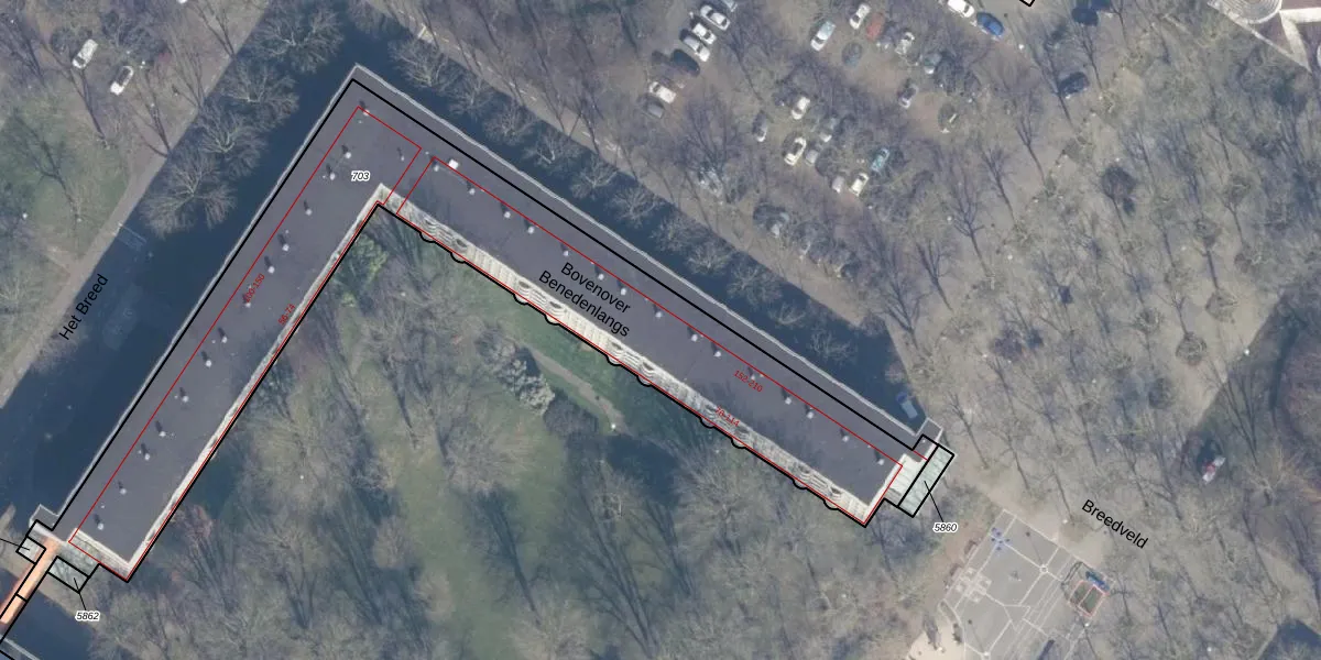 Het perceel waarop Bovenover 182 staat heeft een oppervlakte van 2428 m². Dit is een zeer groot perceel. De perceeloppervlakte wordt geregistreerd door het Kadaster. Gedetailleerde informatie over de maten van dit perceel kunt u vinden in het rapport Kadastrale kaart met maatvoering van Bovenover 182.