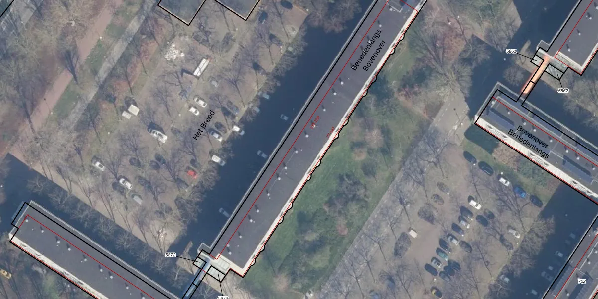 Het perceel waarop Bovenover 197 staat heeft een oppervlakte van 3083 m². Dit is een zeer groot perceel. De perceeloppervlakte wordt geregistreerd door het Kadaster. Gedetailleerde informatie over de maten van dit perceel kunt u vinden in het rapport Kadastrale kaart met maatvoering van Bovenover 197.
