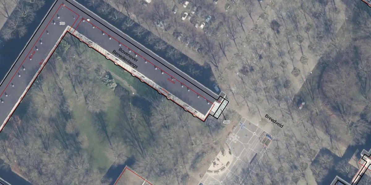 Het perceel waarop Bovenover 200 staat heeft een oppervlakte van 2428 m². Dit is een zeer groot perceel. De perceeloppervlakte wordt geregistreerd door het Kadaster. Gedetailleerde informatie over de maten van dit perceel kunt u vinden in het rapport Kadastrale kaart met maatvoering van Bovenover 200.