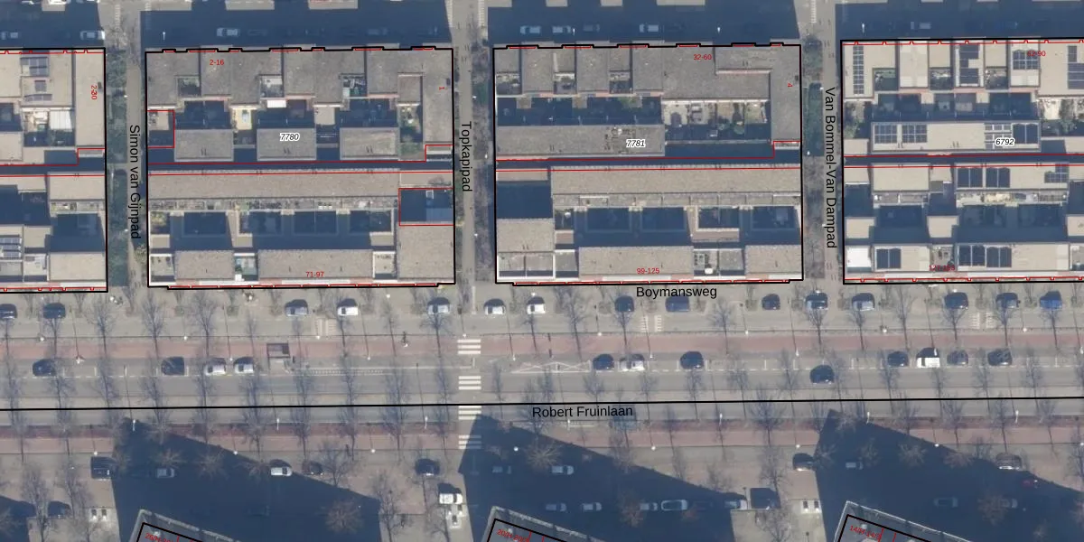 Het perceel waarop Boymansweg 101 staat heeft een oppervlakte van 2490 m². Dit is een zeer groot perceel. De perceeloppervlakte wordt geregistreerd door het Kadaster. Gedetailleerde informatie over de maten van dit perceel kunt u vinden in het rapport Kadastrale kaart met maatvoering van Boymansweg 101.
