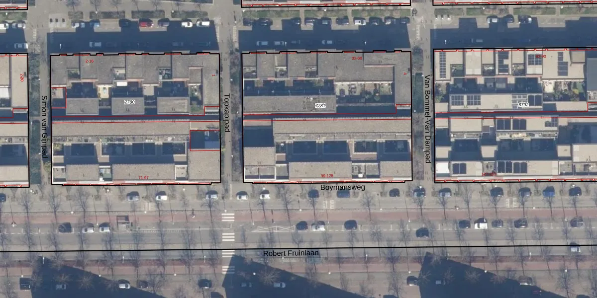 Het perceel waarop Boymansweg 107 staat heeft een oppervlakte van 2490 m². Dit is een zeer groot perceel. De perceeloppervlakte wordt geregistreerd door het Kadaster. Gedetailleerde informatie over de maten van dit perceel kunt u vinden in het rapport Kadastrale kaart met maatvoering van Boymansweg 107.